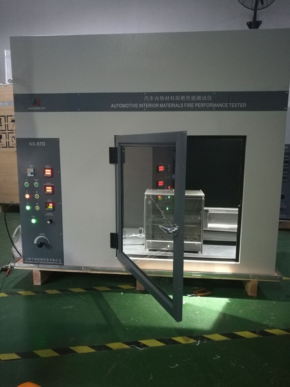 KS-57D汽车内饰材料阻燃性能测试仪是今森公司依据ECER118标准附录6中提及的机动车辆特定类型内部结构采用的材料水平燃烧特性标准测试和GB8410-2006、TL1010、GM6090M、DIN75200、GM9070P、FMVSS 302、JIS D 1201、JASO M403、ISO 3795、ASTM D5132、ASTM D5132、QB/T 2729-2005等标准而生产的汽车内饰材料燃烧试验机,本产品适用于汽车(轿车、多用乘客车、载货汽车和客车)内饰材料水平燃烧特性的评定。二、设备功能实现: